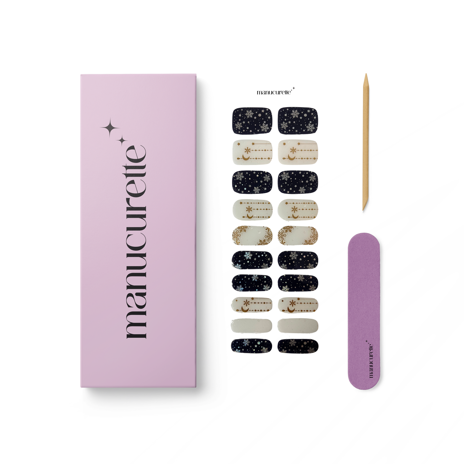 Manucurette erfindet die Maniküre neu, indem es eine einfache, schnelle und effektive Alternative zu traditionellen Methoden bietet. Unsere Sticker aus echtem Gel-Lack ermöglichen eine Anwendung in nur wenigen Minuten, ohne Flüssigkeit und ohne besondere Fähigkeiten, mit einer Haltbarkeit von mehr als 15 Tagen.