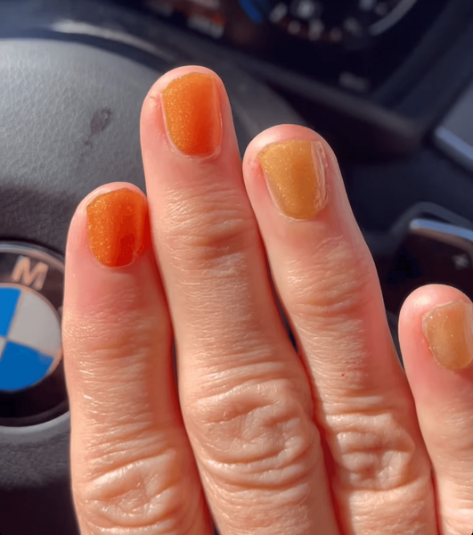 "J’en avais marre des vernis qui ne tiennent pas plus de deux jours. Là, c’est simple : je pose, je catalyse sous la lampe et mes ongles sont impeccables pendant des semaines. Preuve en photo ! Franchement, j’aurais dû tester avant !"